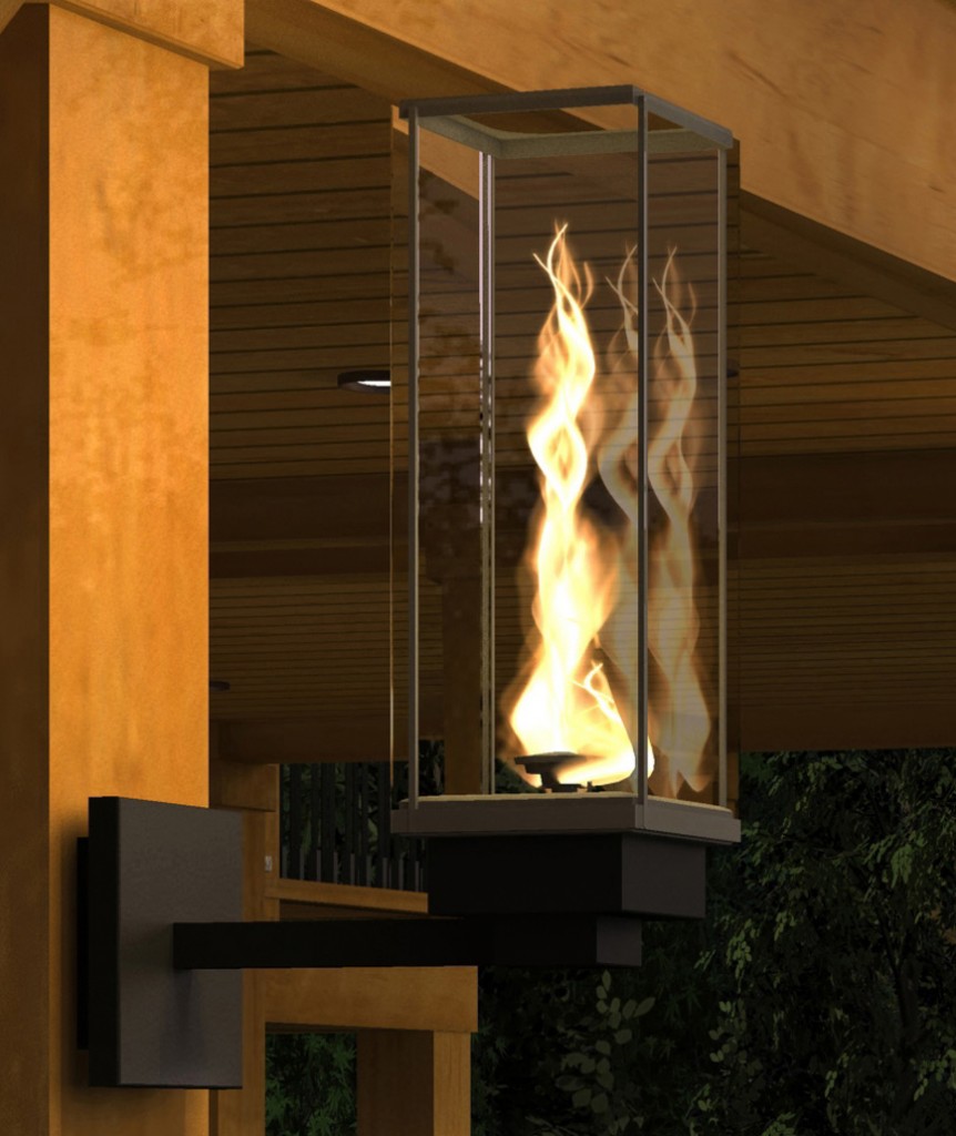 The Tempest Torch's tempered glass housing design directs the oxygen needed for combustion, increasing the flame velocity for a dramatic, spiral-like presentation of fire. Beyond its groundbreaking design, the Tempest Torch's practicality and usability are just as impressive. The variable flame reaches a height of 17", puts out up to 20,000 BTUs. The four-sided, 18" tall open-air tempered glass housing is designed to prevent the flame from going out during high winds or rainfall, but includes an automatic gas safety shutoff valve, should the flame ever go out. And as most Travis Industries' products, the Tempest Torch offers numerous display options for a personalized look: short or tall post versions, wall mounted, without a base for those wanting to construct something unique or utilize an existing feature. With all of these options available, fitting the Tempest Torch into your yard for landscape lighting or for general outdoor lighting is simple and easy. Each option is designed to incorporate the alluring, spiral-like flame into exterior spaces.